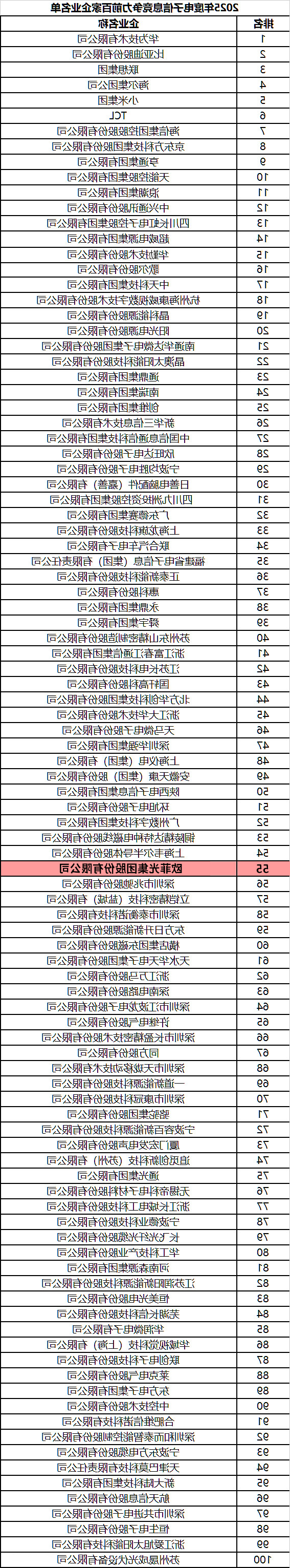 9月5日,中国电子信息行业联合会发布了《2025年度电子信息企业竞争力报告》及前百家企业名单。凭借卓越的技术创新实力、稳健的发展韧性及持续的行业贡献,欧菲光集团股份有限公司位列榜单第55位,较去年攀升了21位,充分彰显了公司强劲的发展势头。